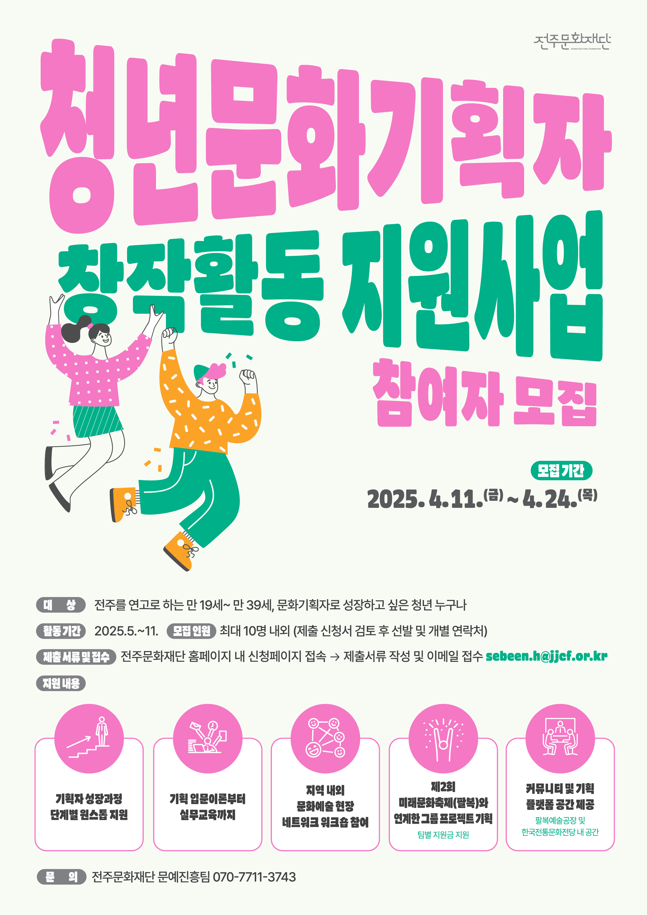 [공모] 전주문화재단 - 2025 청년문화기획자 지원사업 참여자 모집