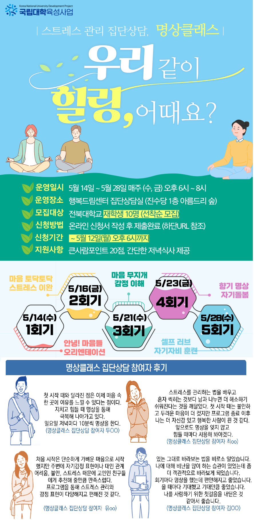 - 대 상 : 전북대학교 재학생 10명 (선착순 접수)