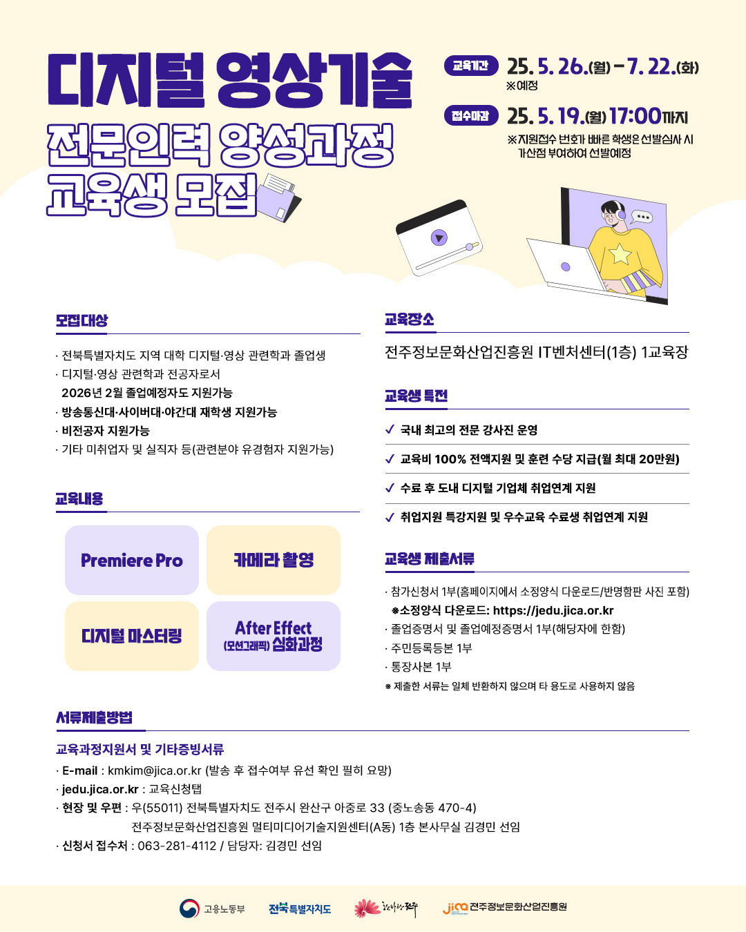 지금 바로 디지털 영상기술 전문인력 양성과정 교육에 지원하세요 🙌✨️