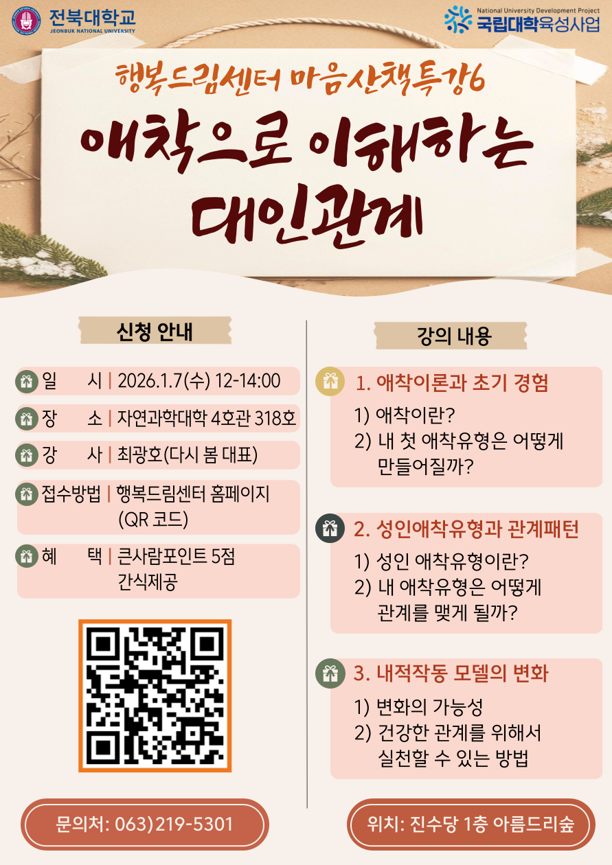 [행복드림] "애착으로 이해하는 대인관계" 프로그램 안내(마음산책특강6)